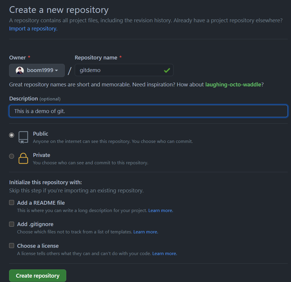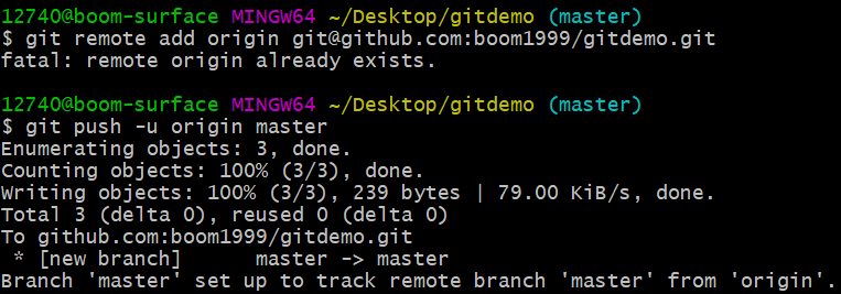 $ git remote add origin git@github.com:boom1999/gitdemo.git
