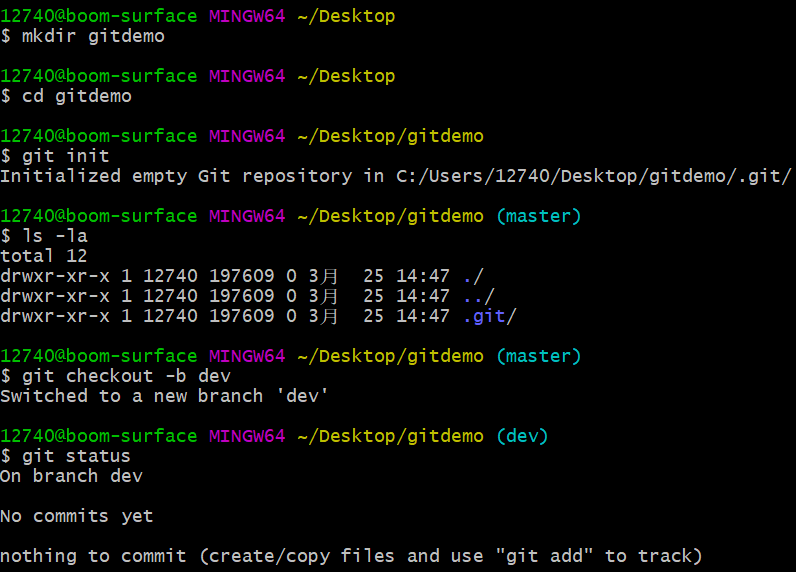 git commit . -m "" //将缓存区的内容提交到历史区("-m"表示不跳到另一个页面)