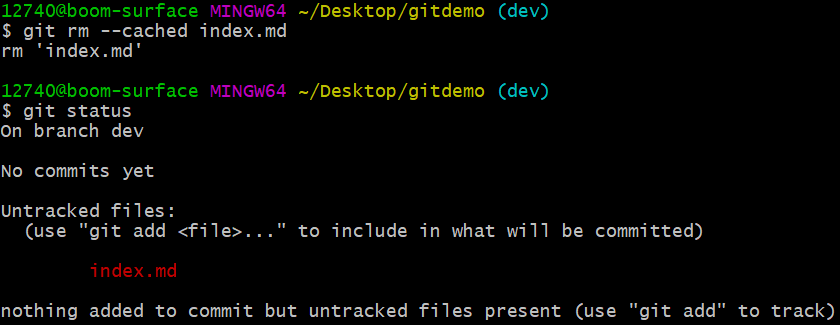 • 提交文件至缓存区(用git add .提交目录下所有文件)