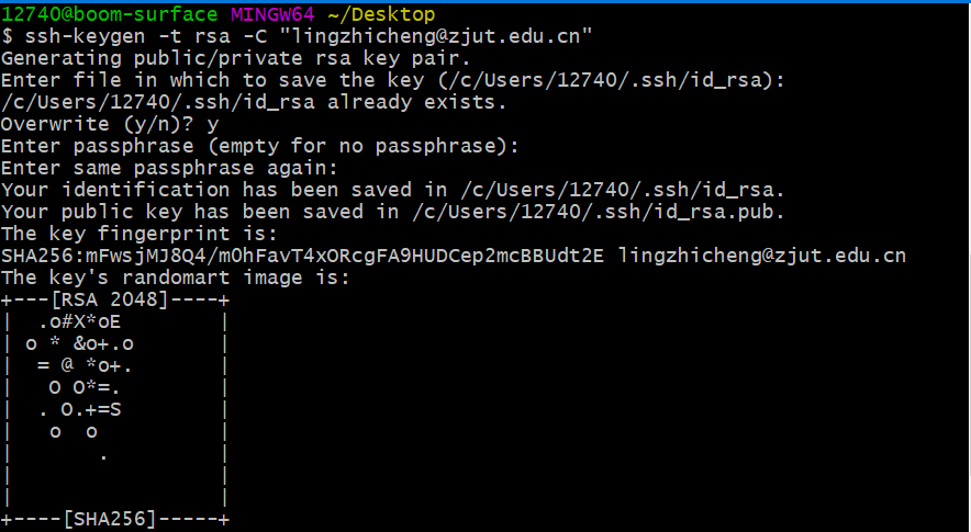 $ ssh-keygen -t rsa -C "lingzhicheng@zjut.edu.cn"