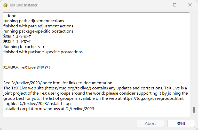 • 🔧 Modify the installation path, usually Disk:/texlive/year, such asD:/texlive/2023, and then click Install. It may take a while, depending on your computer performance, so take a break with a cup of coffee.