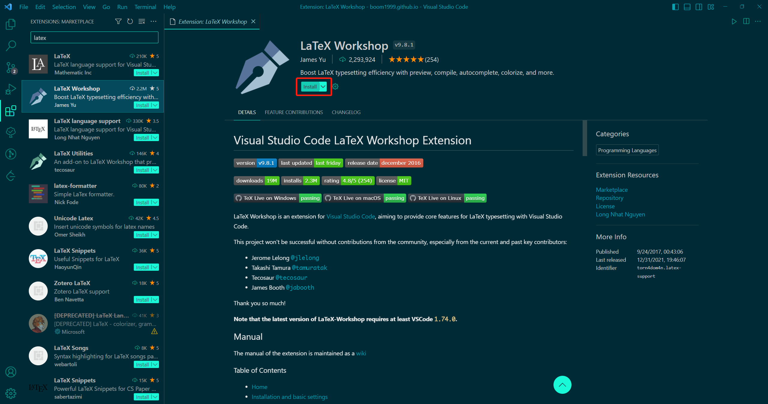 • Search for LaTeX Workshop.